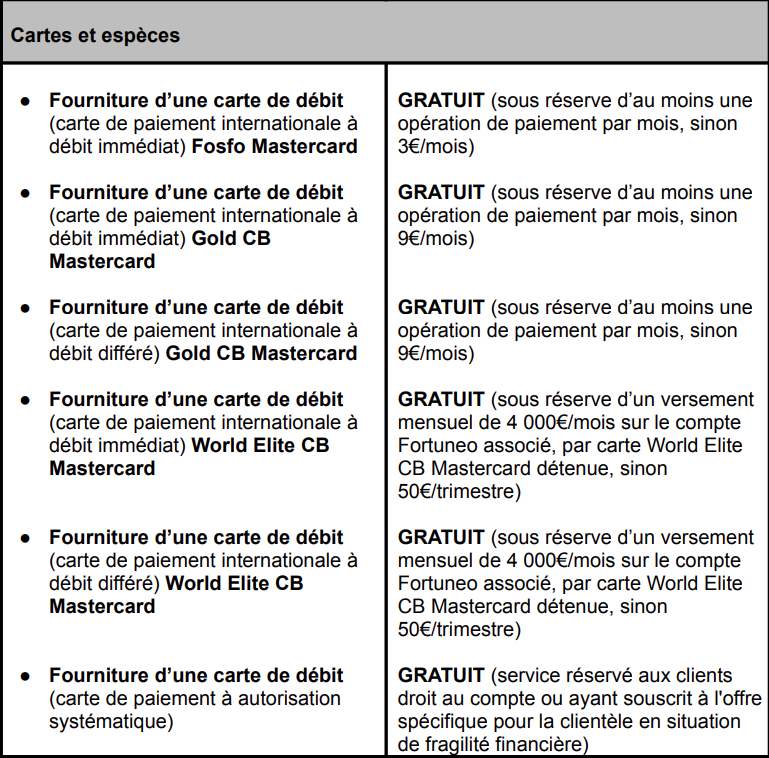 et j’ai contacté Fortuneo via la messagerie de leur service client, qui eux ne casse pas la tête dans leur réponses en me ramenant à chaque fois à leur grille tarifaire dont j’ai toujours pas vraiement compris si leur Gold mastercard en débit immédiat était avec ou sans autorisation systhématique !!?