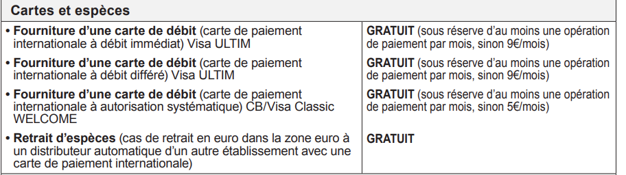 Vous pouvez vérifier cette information dans le Document d’Informations Tarifaires qui est un document obligatoire, devant être mis à disposition facilement. Généralement sur les sites des banques.